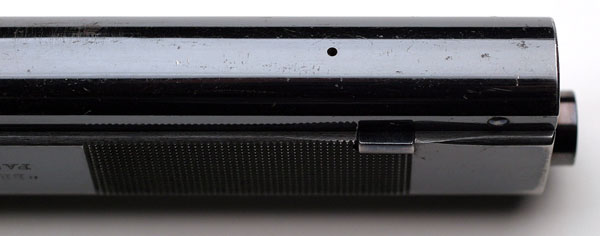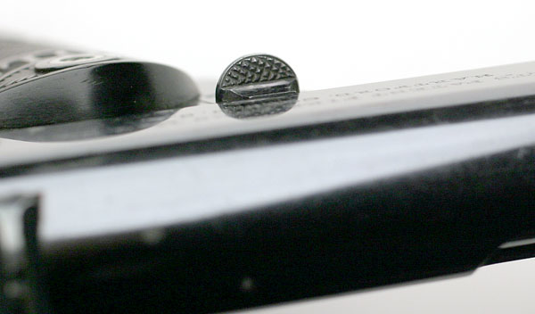When the early style slide serrations were relocated to the back of the slide, the "BROWNING'S PATENT" (left side) and "MODEL 1902" (right side) slide markings were no longer used.