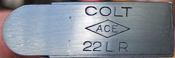 Base plate of the magazine with COLT over ACE in a diamond over 22 L.R.