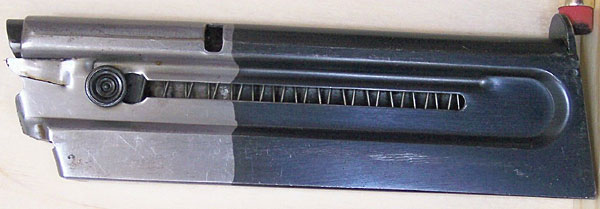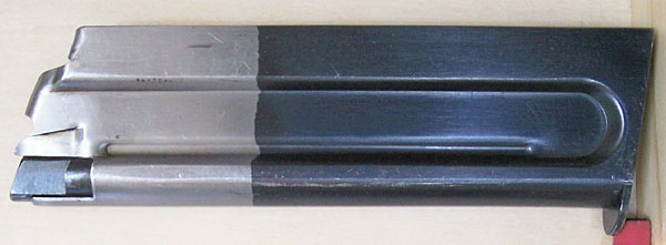 Original two-tone magazine.  Hole in rear of magazine (visible in the photo below) does not appear on all Ace magazines.  Later two-tone magazines have been observed without the hole.