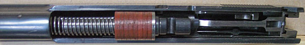 Bottom of the slide showing recoil spring and eight buffers (part number 54 in Colt Ace parts diagram)