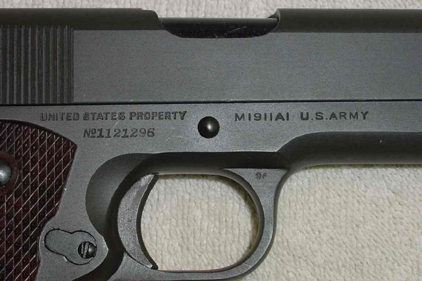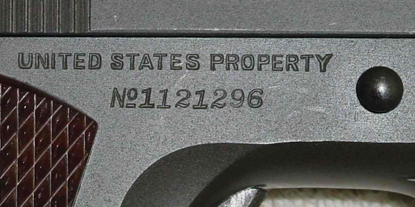 UNITED STATES PROPERTY, serial number and M1911A1 - U.S. ARMY markings.