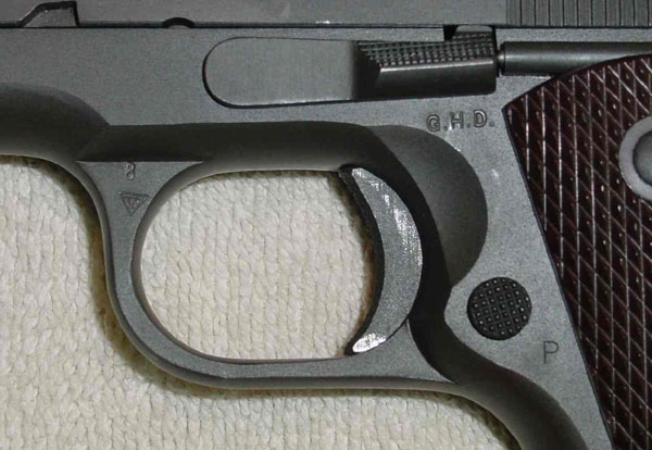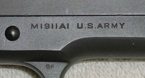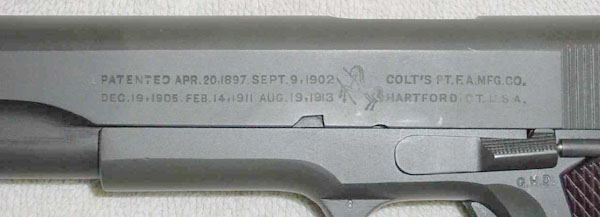 G.H.D. ordnance mark below slide stop for Brig. General Guy H. Drewry, Springfield Ordnance District, Army Inspector of Ordnance, June 17, 1942 to July 15, 1945.