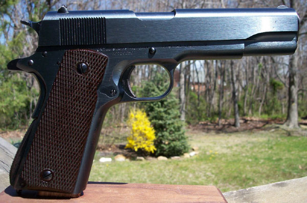 Colt Model 1911A1 - Blued Colt M1911A1 .45 cal. S/N 719250, the slide is numbered to match, CSR inspectors mark on left side of the frame and on the top of the frame near the disconnector.  Pistol has Coltrock stocks which are not commonly encountered on these pistols as it proved to be too brittle for military use.  Pistol was one of 700 pistols shipped to the Commanding Officer, Springfield Armory on April 26, 1940.