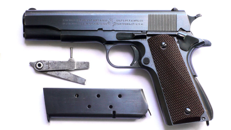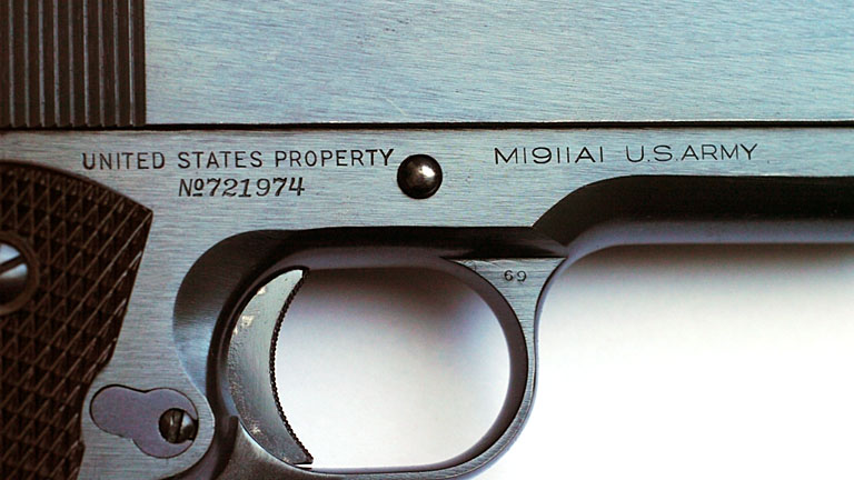 Colt 1911A1 serial number 721974 (ca. 1940) - matching numbered slide.