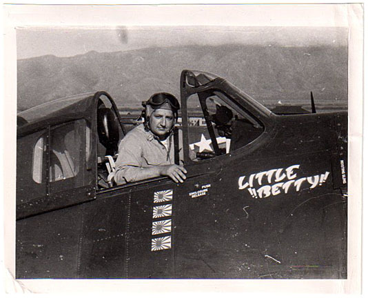 Lt. Roach with his aircraft "Little Betty" named after his wife. Caption on the back to his