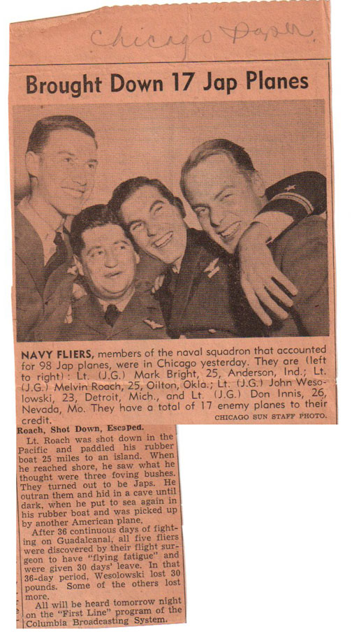 30 days leave. During that time, Lt. Roach and four other VF-5 pilots toured the US in an effort to sell war bonds