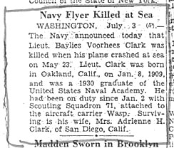 Report of Lt. Baylies Voorheis Clark's plane crash, New York Herald Tribune, July 3, 1940