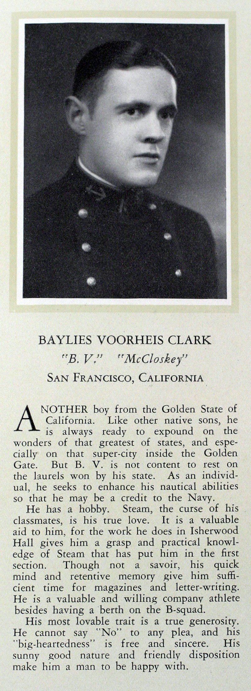 Baylies Voorheis Clark from the United States Naval Academy yearbook "The Lucky Bag of 1930."