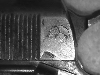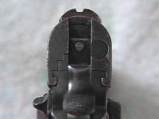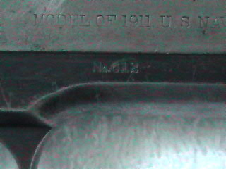 In this serial number, range Frank Hosmer's provisional inspection mark "H" should be horizontal and should be stamped on the rear of the slide.