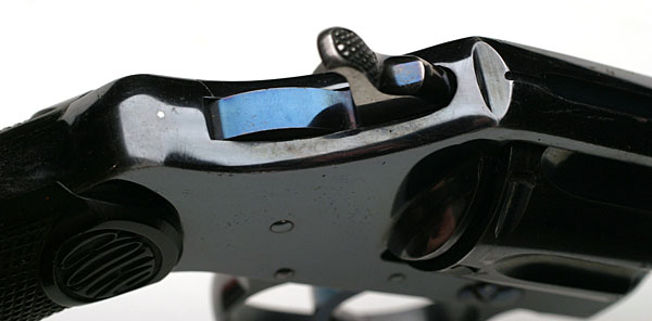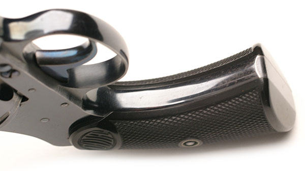 checkered hard rubber grips. Pistol was manufactured in 1907.