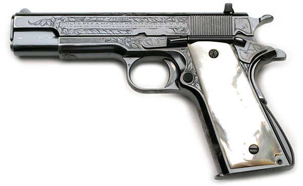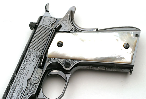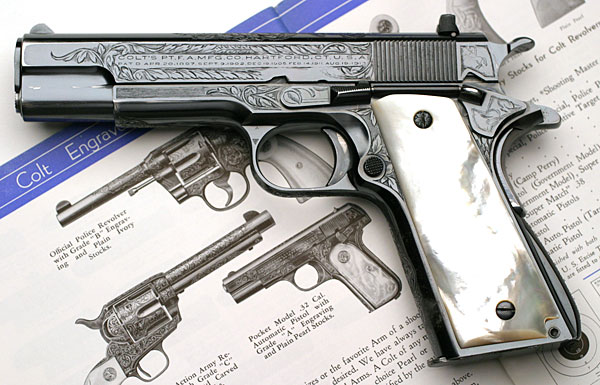 With Mother of Pearl Grips and Factory Engraving with "B" Coverage from the shop of Colt Master Engraver Wilbur Glahn