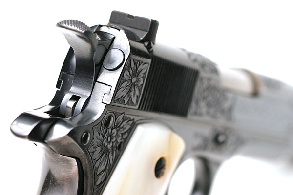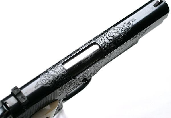 Engraving on grip safety.