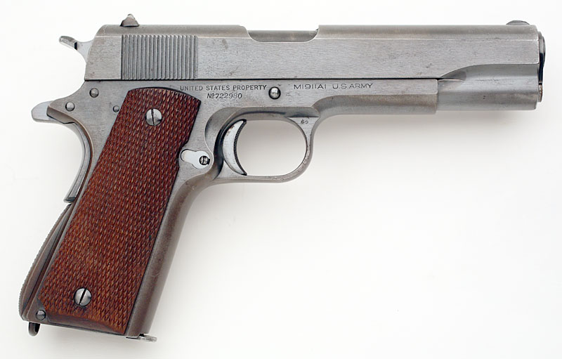 Colt Model 1911A1 .45 ACP serial number 722980 (ca. 1941) - Feed ramp is in the white.