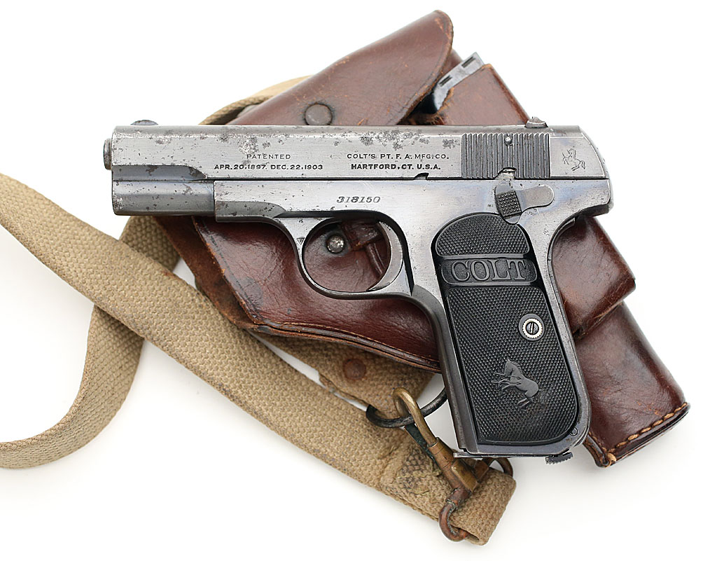 Colt 1903 Pocket Hammerless .32 ACP serial number 318150 - Left side view pictured with shoulder holster.