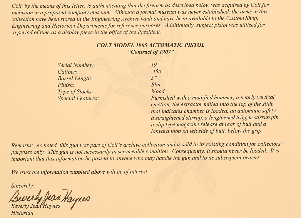 Colt Model 1907 U.S. Military Trials .45 ACP - Serial Number 19