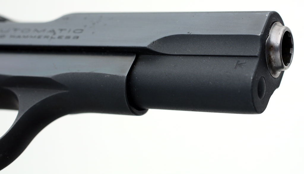 Colt Pocket Hammerless 1908 .380 ACP serial number 59314 (ca. 1921)  - lower portion of slide showing matte finish from factory refinish.
