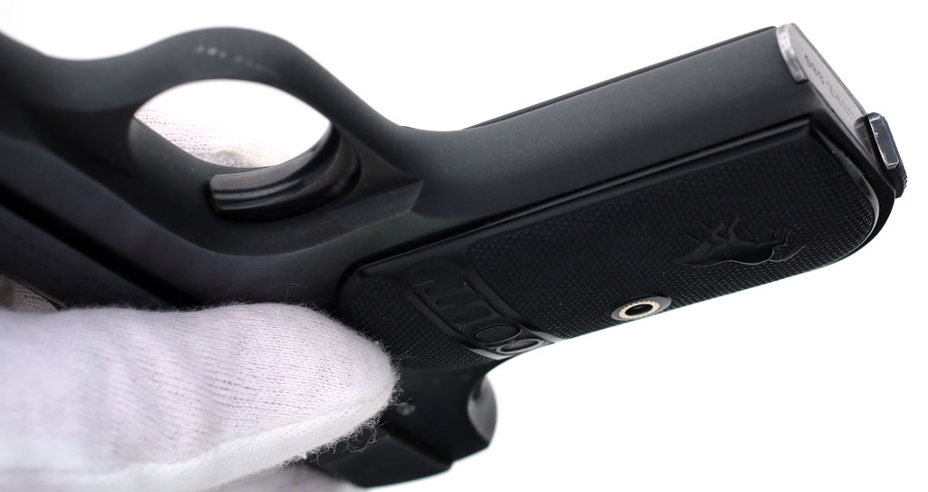 Colt Pocket Hammerless 1908 .380 ACP serial number 59314 (ca. 1921)  - front grip strap showing matte finish from factory refinish.