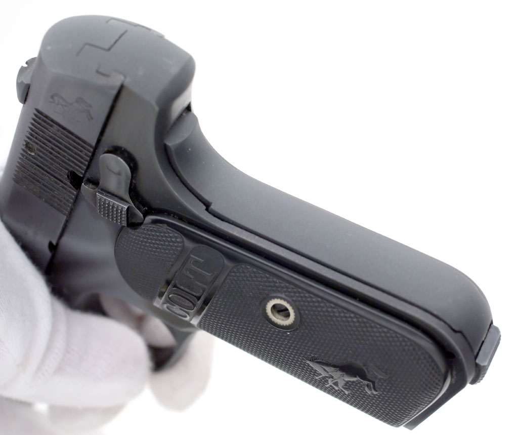 Colt Pocket Hammerless 1908 .380 ACP serial number 59314 (ca. 1921)  - grip safety showing matte finish from factory refinish.