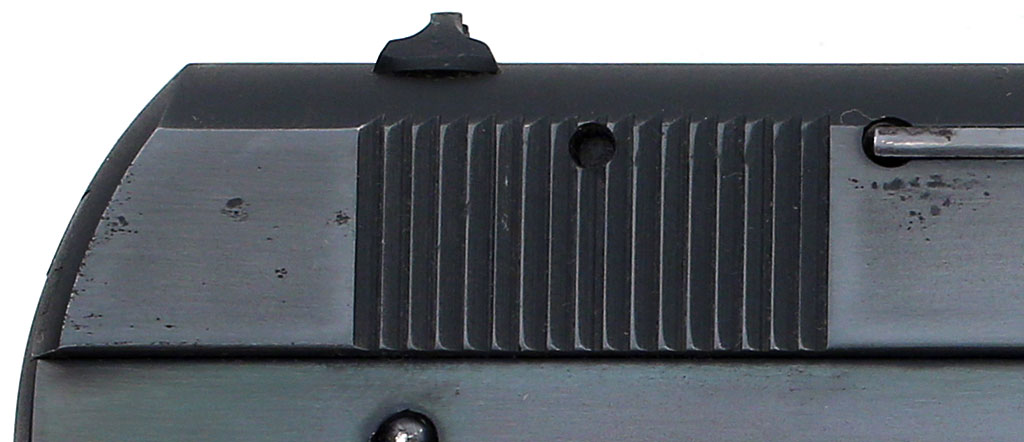 Colt Pocket Hammerless 1908 .380 ACP serial number 59314 (ca. 1921)  - top of slide showing matte finish from factory refinish.